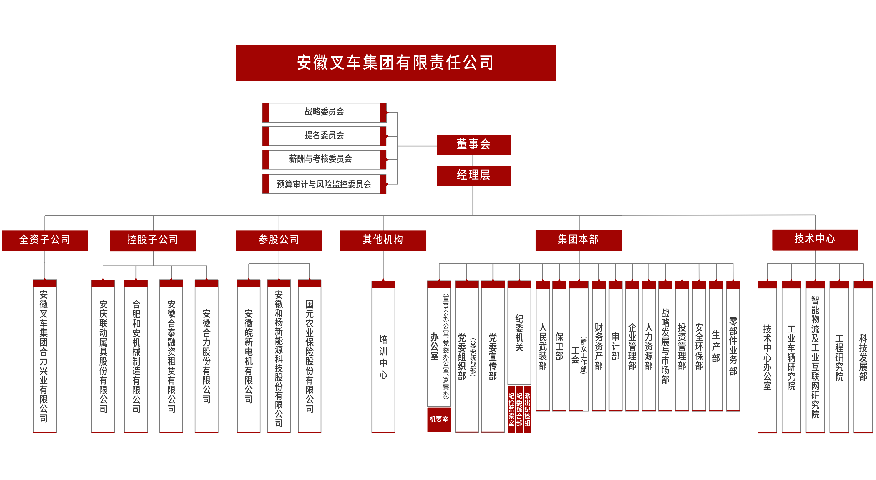 安徽叉車集團有限責任公司(以下簡稱“叉車集團”)系安徽省屬國有獨資公司,其前身為合肥礦機廠新廠,始建于1958年,1992年以合肥叉車總廠為核心組建叉車集團。